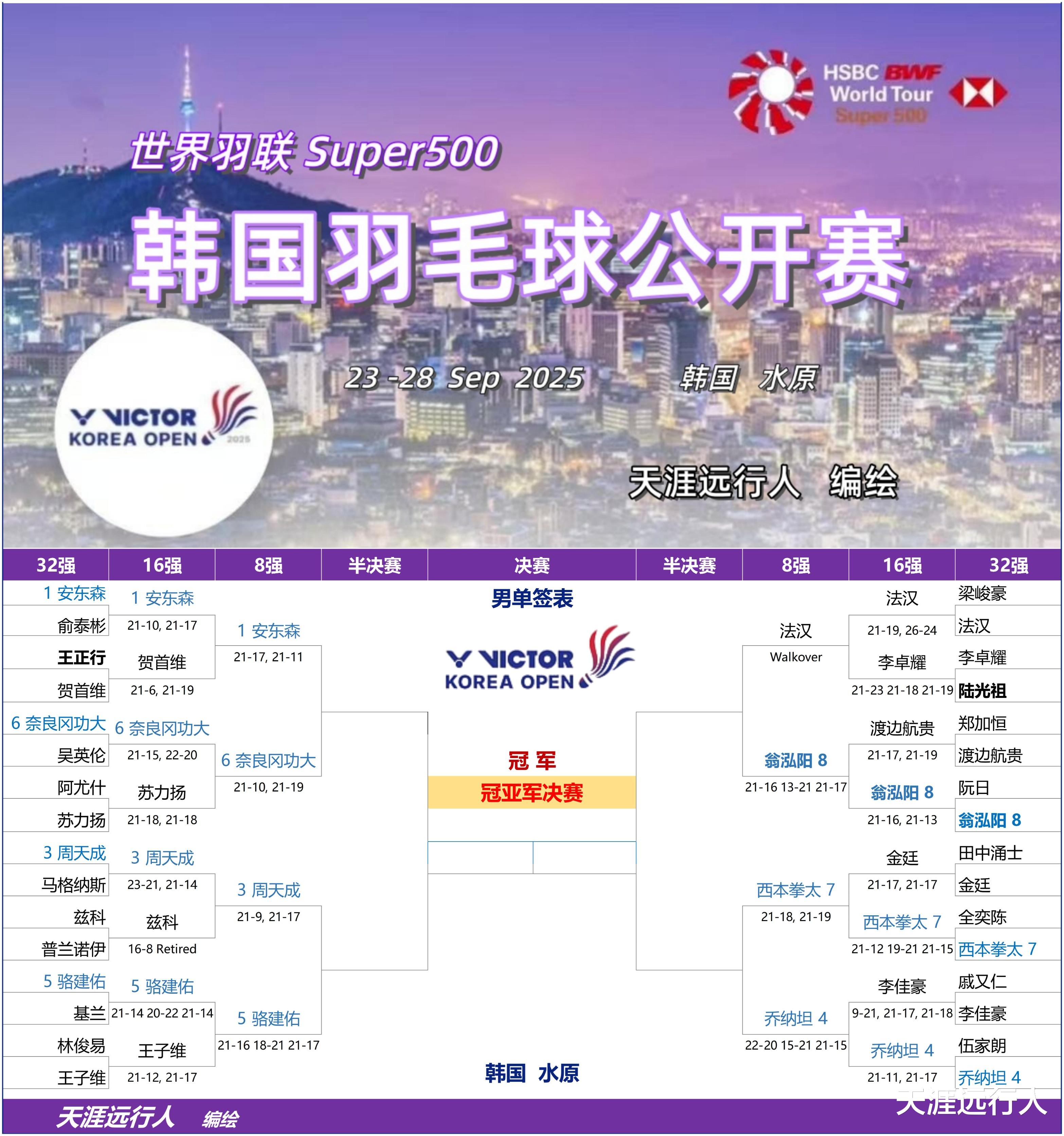 2025韩国公开赛1/8决赛国羽重点赛事战报赛况