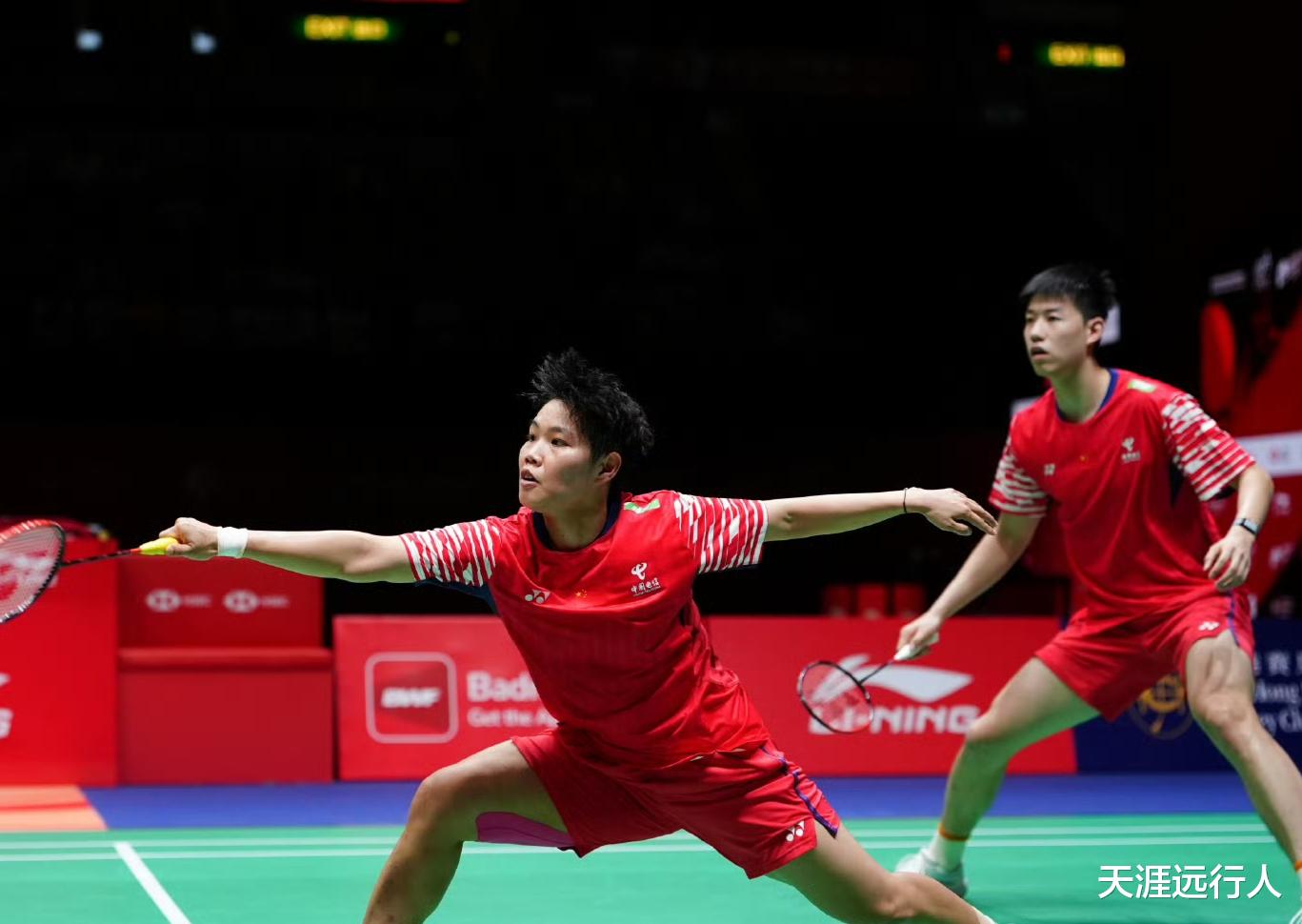 新搭档任翔宇/谢浩南,以14-21, 21-13, 21-10,德比战逆转拿下队友孙文骏/曾维瀚,晋级男双8强,收获双方首次交手的胜利,下一轮将对阵世界排名第一的韩国组合金元浩/徐承宰。