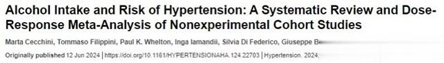 2024年6月12日,《Hypertension》发表了一篇研究。研究告诉我们,酒精和高血压风险的关系几乎是“喝得越多,风险越高”,没有所谓的安全剂量。就像往火里添柴,添得少火可能暂时不旺,但只要添了,温度就会上升。