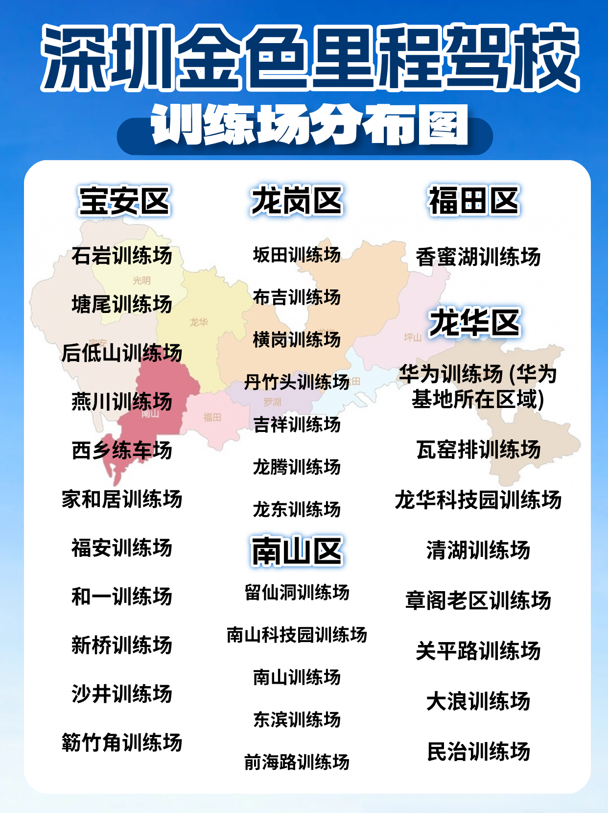 福田区的朋友们,想找一家靠谱的驾校学车吗?金色里程驾校作为深圳本土17年老牌驾校,在福田区设有多个直营训练场,是您学车的明智之选。我们不仅是官方认证的AAAA级驾校,更连续多年蝉联"深圳十大驾校榜首"。
