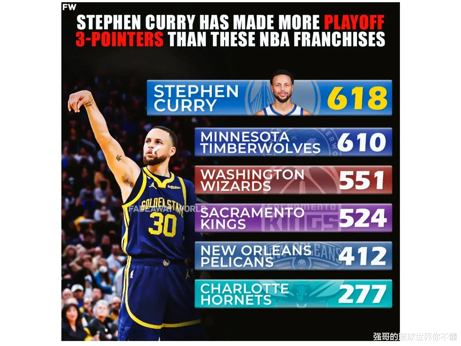而且,即便是在季后赛,他依旧是有着不偏令人震惊的三分球记录。最近,美媒列出了斯蒂芬库里季后赛职业生涯三分球命中球数,居然比五支球队还要多。