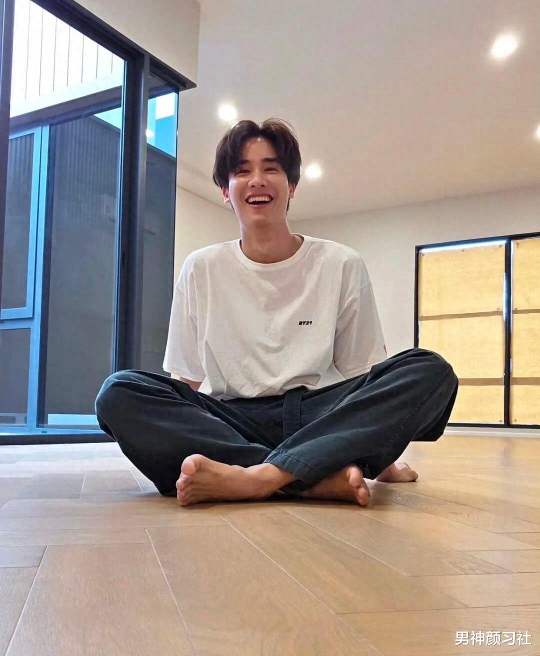 如果你整个人是偏温文儒雅型的男生,可以学学他的做法,把自己打造成更为休闲感的样子。只不过是用了灰色短袖搭配卡其色裤子和德训鞋,就达到了这样的效果。