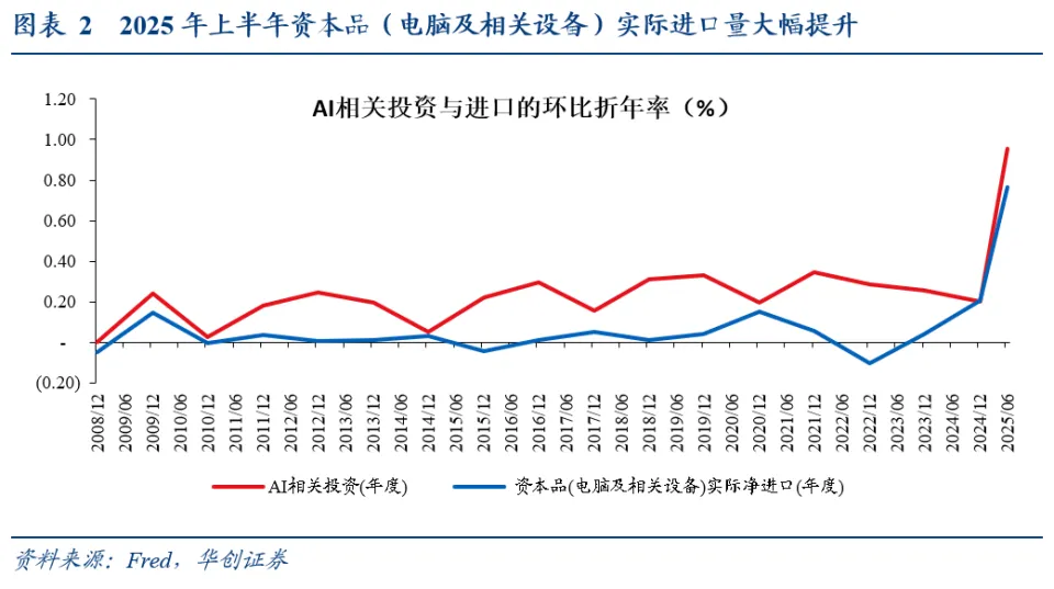 而对美国而言,2025年AI相关信贷规模突破2000亿美元,占美元信贷净供应30%,贡献了超过20%的GDP增长,若剔除AI支出,美国经济可能濒临衰退。