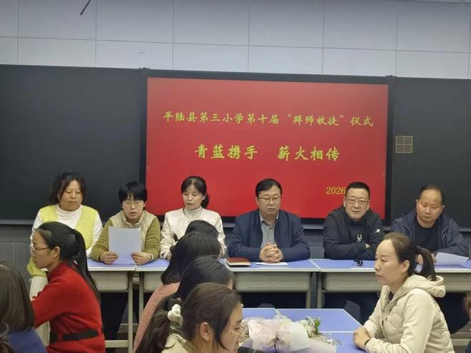 春风育桃李,匠心筑梦行。为加快青年教师专业成长,夯实学校师资队伍建设,2026年3月31日,平陆县第三小学隆重举行第十届 “青蓝携手 薪火相传” 师徒结对活动,21 对师徒正式结缘,共赴教育成长之约。本次活动由教学副校长李雪绒主持。