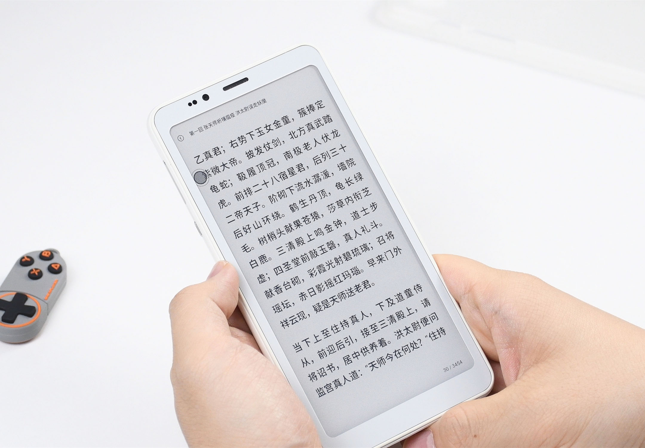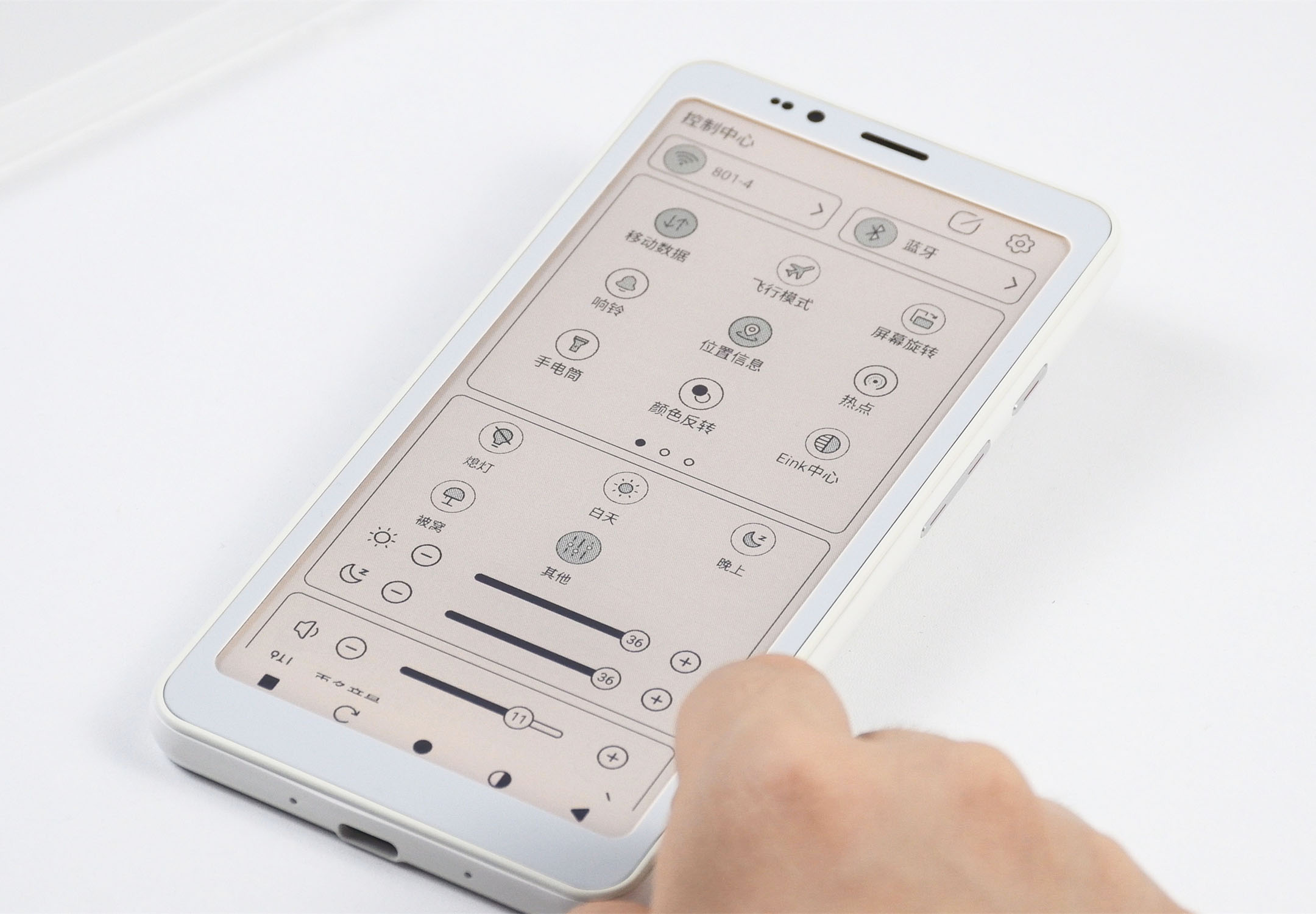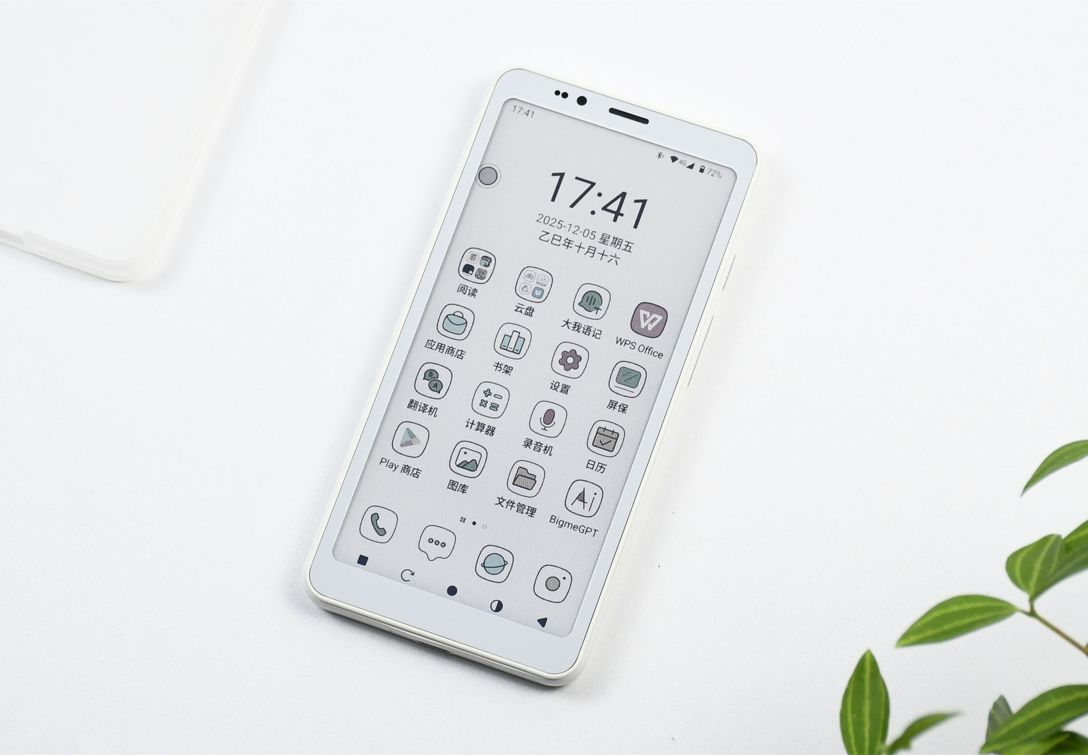 先来说下各位可能关心的屏幕以及刷新设计。HiBreak S搭载了一块5.84英寸的彩色墨水屏,彩色显示分辨率为240*480,黑白显示分辨率为720*1400,外屏为玻璃面板,并具备36级冷/暖双色温阅读前光灯。机身则为纯白设计,颜值不错,厚度也还好,约为8.6mm。