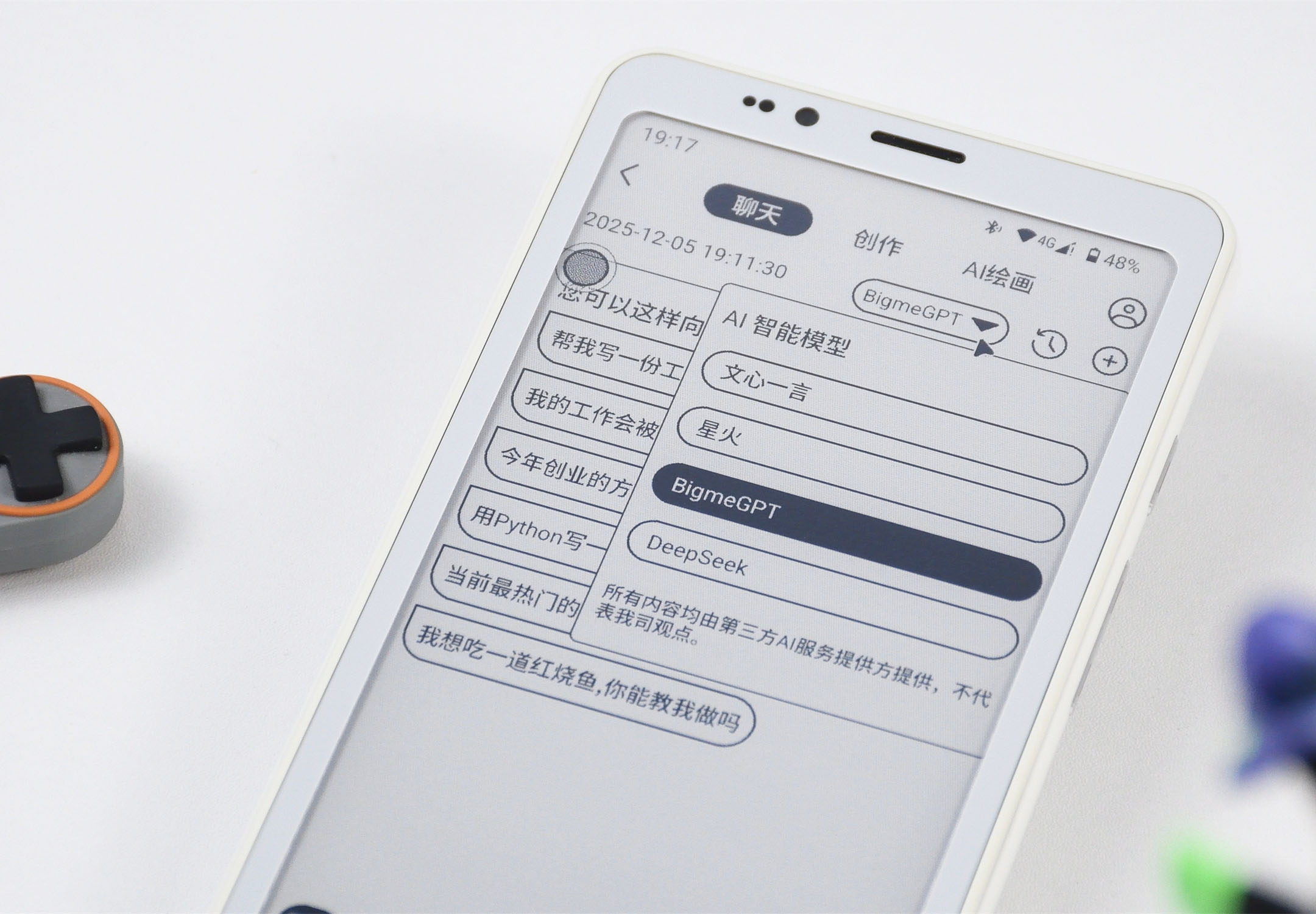 文章开头提到的AI体验,其实是指系统中整合了BigmeGPT、文言一心、星火以及DeepSeek四大AI模型的AI助手,该功能可以实现智能对话、内容创作以及AI绘画等体验。