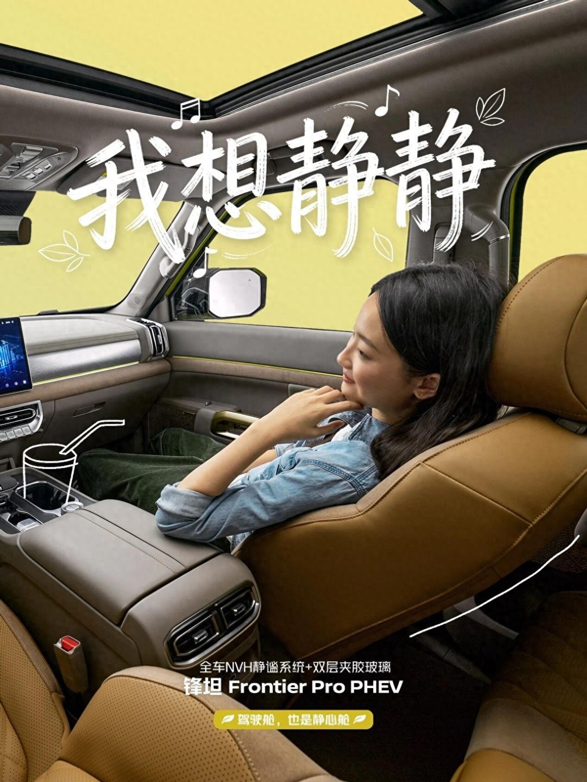 锋坦Frontier Pro PHEV的设计超脱驾驶舱,是安心休憩、回归自我的“理想国”。