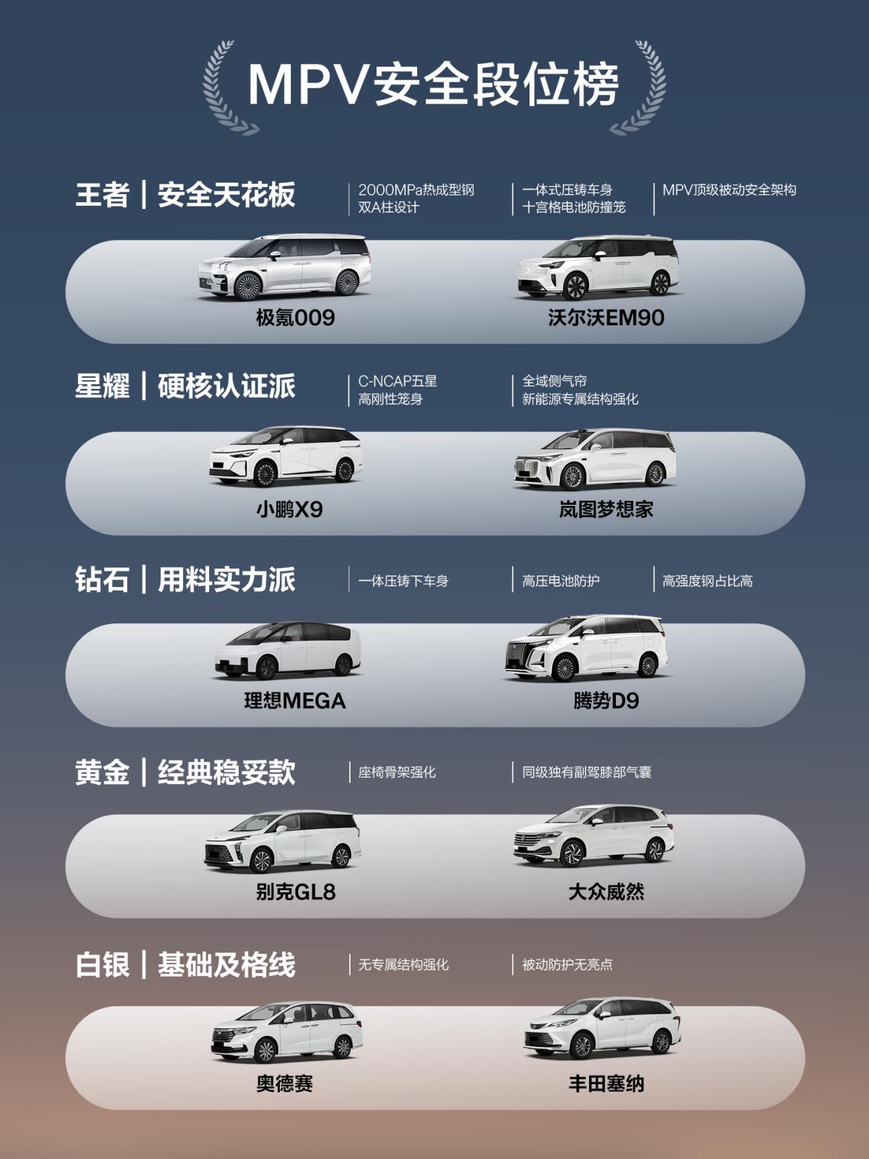 豪华MPV到底谁最安全?一图看懂!