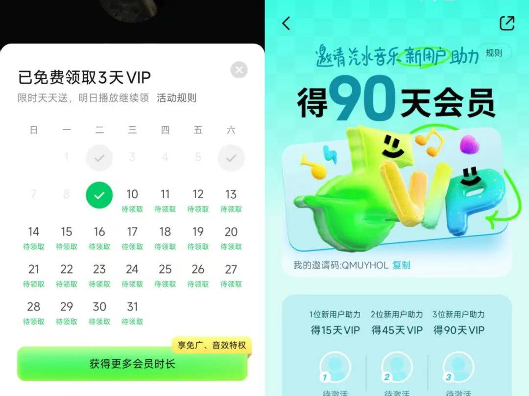 汽水音乐还采取了互联网最大的杀器——免费策略,初始阶段用户每天登录即可领取会员,后续也可以通过看广告兑换会员权益,迅速俘获了大量用户。