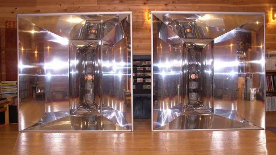 这些扬声器的一个惊人之处在于,它们的总重量接近1800磅,而每个铝制扬声器锥的重量却非常轻,只有8克。Takai鼓励人们把房子建在扬声器周围,而不是简单地把它们安装在现有的空间里——目前还不知道是否有人真的听从了他的建议。