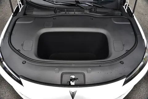 空间体验上,深蓝L07表现得十分宽敞。以一位身高178cm的体验者为例,前排座椅调至合适位置后,头部空间约有一拳半的余量,腿部空间超过两拳半,整体感受非常舒适。后排空间同样令人满意,腿部空间约为两拳,头部空间接近一拳,即使是长途乘坐也不易感到压抑。车身宽度1890mm,后排座椅宽度达1382mm,座椅设计贴合人体工学,配合30°角度倾斜,乘坐舒适性较高。储物能力方面,前行李厢容积为70L,后备厢容积为473L,后排座椅40:60比例放倒后可扩展至1180L,满足日常装载或短途旅行的多种需求。此外,配备手套箱与中控箱总容积达13.5L,车内小物件存放颇为方便,实用性值得肯定。