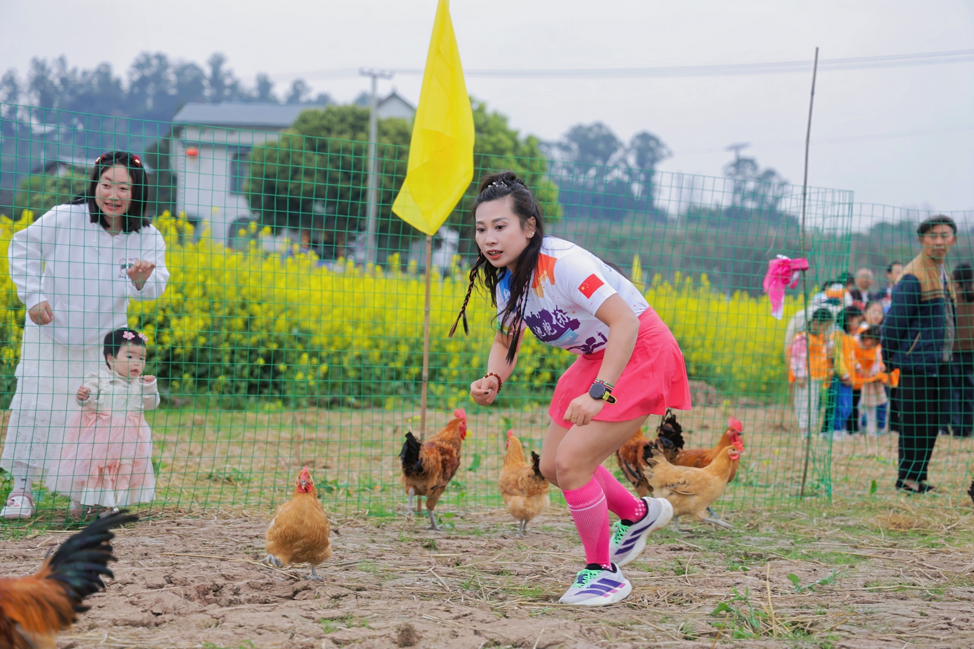 动感花海,活力全开。上午9时许,“骑游逐香”骑行活动率先鸣笛,专业骑行爱好者驰骋产业环线,休闲骑游队伍漫步花海小环线,车轮穿梭间尽览金色花海与乡村田园风光;稍后的“花海穿越”活动更是火热开拔,专业跑团竞速乡村赛道,快乐跑、情侣跑、亲子跑等体验组欢声笑语不断,赛道穿越油菜花田核心区、村庄大院与林间绿道,独特的“乡愁赛道”让游客在运动中感受乡村之美;“金色漫步”活动相继开启,趣味合影框、骑马体验点引来游客驻足打卡,全民参与欢乐慢跑、健步走,在花海间解锁春日美好。