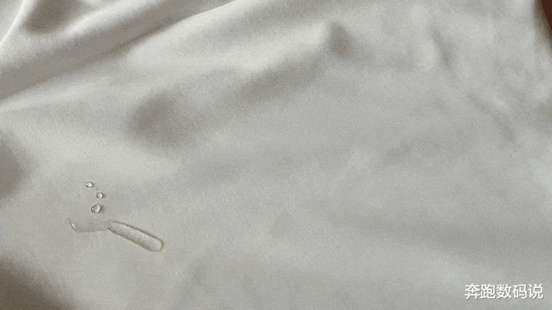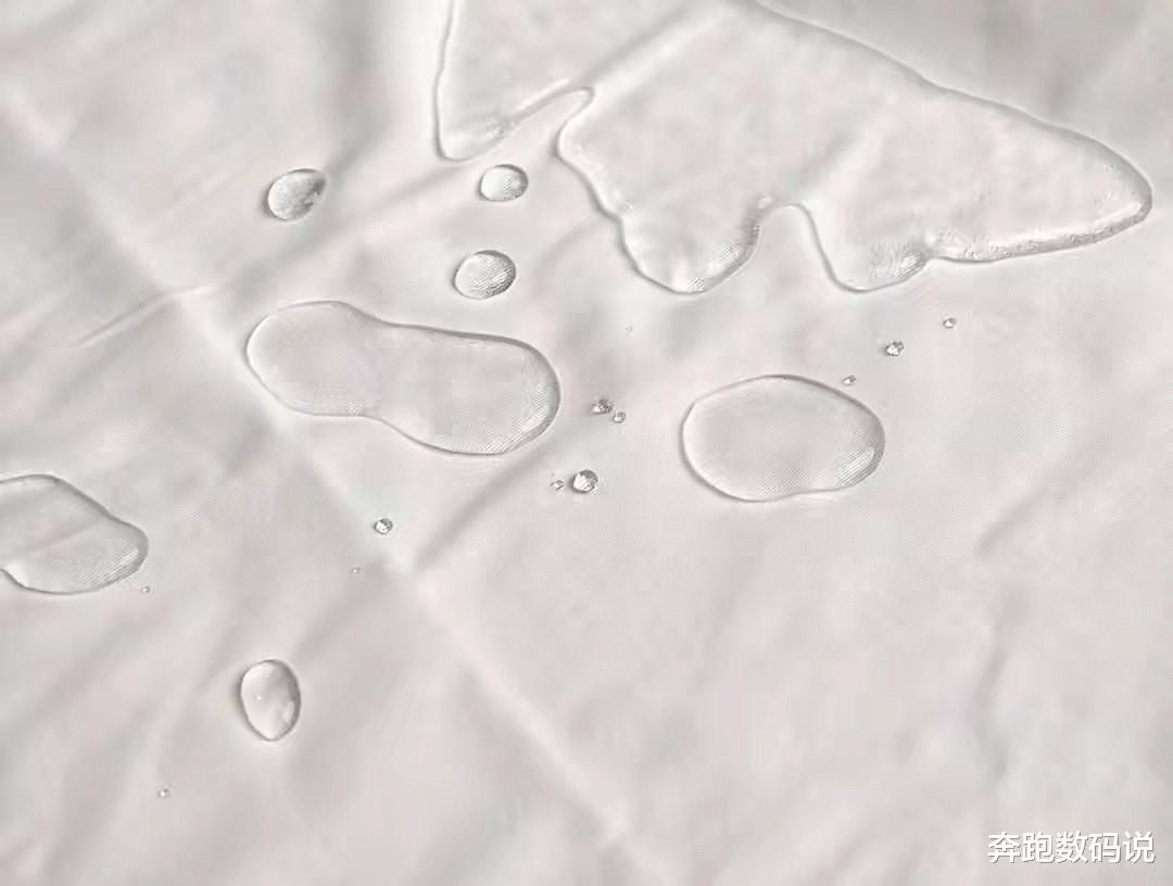 采用洒水测试,水流一接触面料立刻形成饱满水珠快速滚落,面料表层始终保持干爽,不渗水、不留水渍、不晕开。用衣服折叠成兜装水静置 1 分钟以上,内侧依然干燥无渗透,达到超行标 5 级防水效果。日常突然下雨、水杯打翻、洗手溅水都能轻松应对,户外临时遇雨也能提供有效防护。