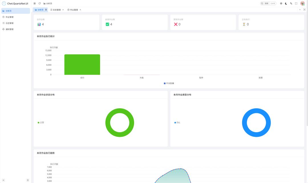 提供完整的任务调度能力,支持文件存储和数据库存储两种方式,旨在降低 Quartz.Net 的使用门槛,通过直观易用的界面帮助开发者轻松完成定时任务的创建、管理、监控与调试,无需深入理解其复杂的底层 API。