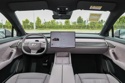 车内采用“城市绿洲 AI 智舱”设计语言,中控台布局简洁,取消传统仪表盘,以13英寸HUD抬头显示替代。配备17.2英寸3K中控屏,搭载高通骁龙8295芯片,操作流畅度值得称道。内饰材质方面,采用环保可持续材料,座椅使用仿皮材质并提供多种配色选择。