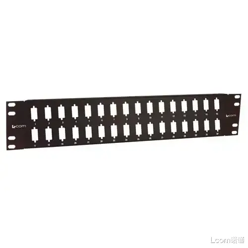 L-com 3.5×19英寸(8.9×48.3厘米)空白配线架,带32个通用DB9/HD15/HDMI开口