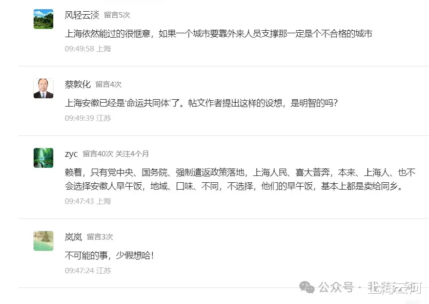 在安徽老乡的眼里,上海和安徽根本不是什么‘命运共同体’,那是什么呢?有安徽老乡说:“上海是安徽人的殖民地”。