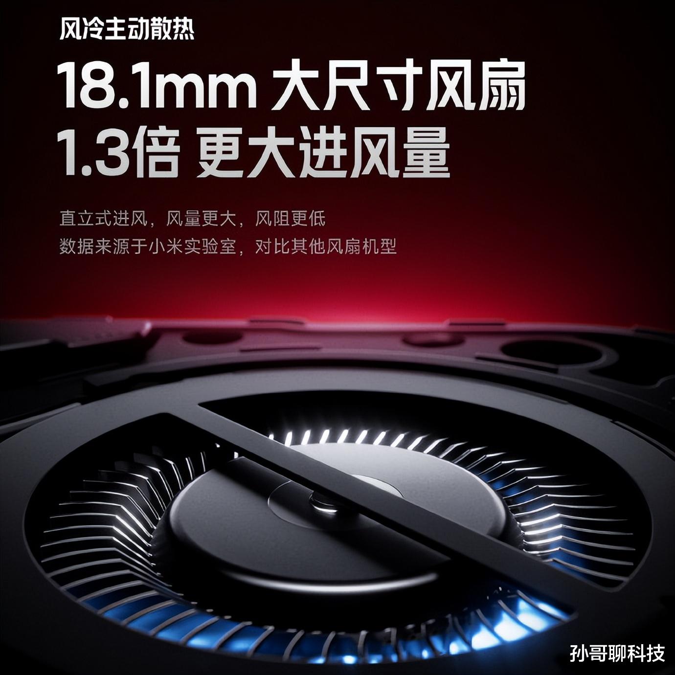 红米K90 Max采用直进风设计,对着处理器等核心发热源吹风,没有像红魔那样通过风道散热,整体散热效率更高。按照红米官方算法,风量利用率相比风道式设计提升40%,而且这一次小米也取消了小字,常规尺寸字体显示对比其他风扇机型,没说哪一款手机。