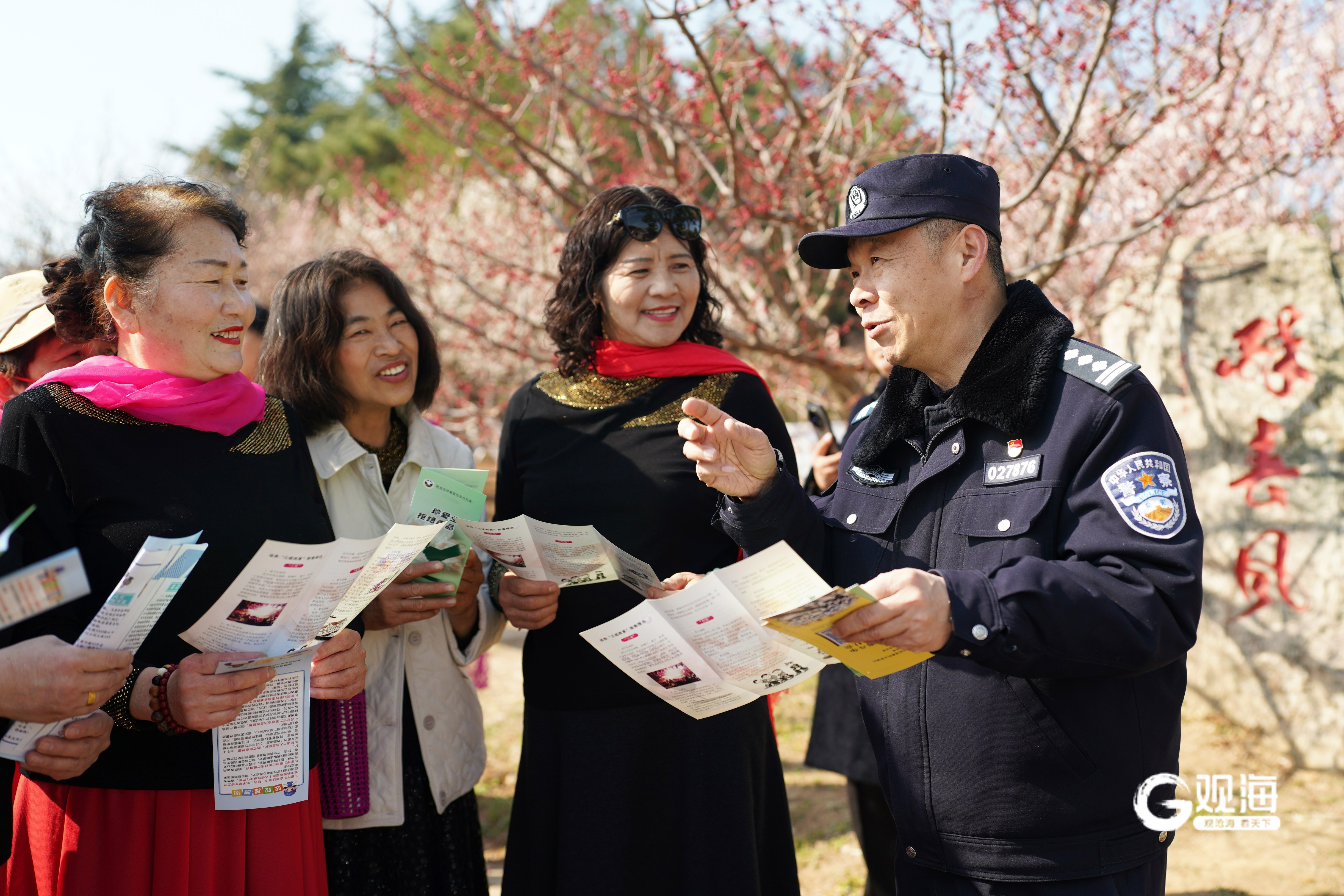 李沧公安分局民警因地制宜,将宣传阵地搬进梅林花海,采取“见缝插针”的流动宣讲方式,趁着游客购票、观景、休憩的间隙,主动靠前、贴心宣讲。把生硬的法律条文、安全常识,转化为接地气、记得牢的温馨提示,让安全宣传融入赏花全过程,不扰雅兴、效果十足。