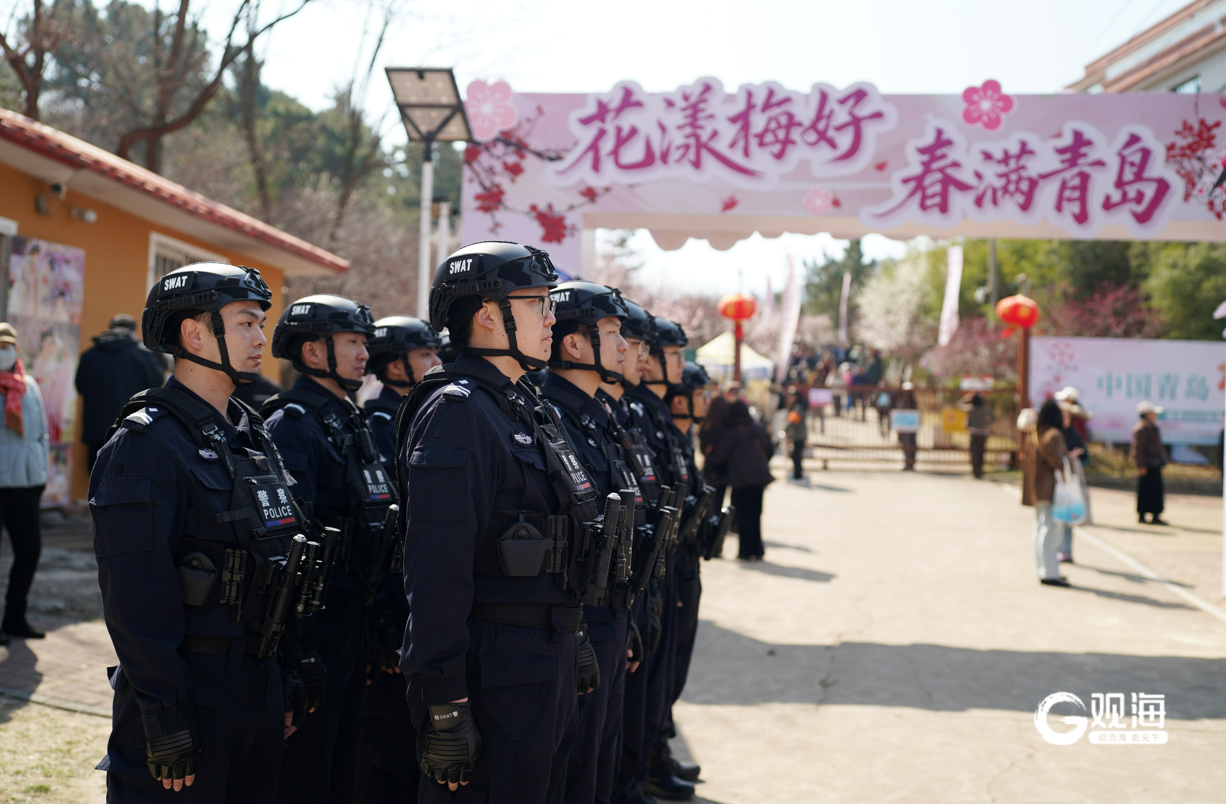 春潮涌动,万物向荣。以“花漾梅好 春满青岛”为主题的第二届青岛赏花节暨第二十六届青岛梅花节日前在李沧区十梅庵公园正式启幕。园内2万余株梅花竞相绽放、凝香吐蕊,粉白相间的花枝绵延成片,将春日岛城晕染成一幅诗意盎然的天然画卷。当万千市民游客沉醉于十里梅香、尽享春日闲趣时,一抹抹挺拔的藏蓝身影穿梭于花海之间,以担当守护赏花盛景,用坚守筑牢平安防线,为这场春日之约绘就了最坚实的平安底色。