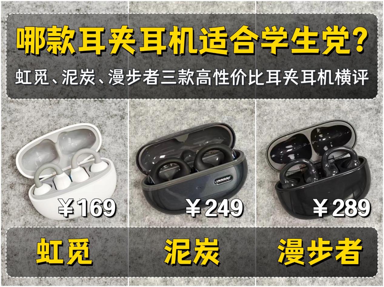 因此,为了帮大家选到高性价比的耳夹式耳机,我特地挑选虹觅、泥炭、漫步者的三款平价热门耳夹耳机,从外观、佩戴、音质到核心配置等等方面全方位对比测评,把每款的优缺点都梳理清楚,让大家能快速了解怎么挑高性价比的耳夹式耳机。