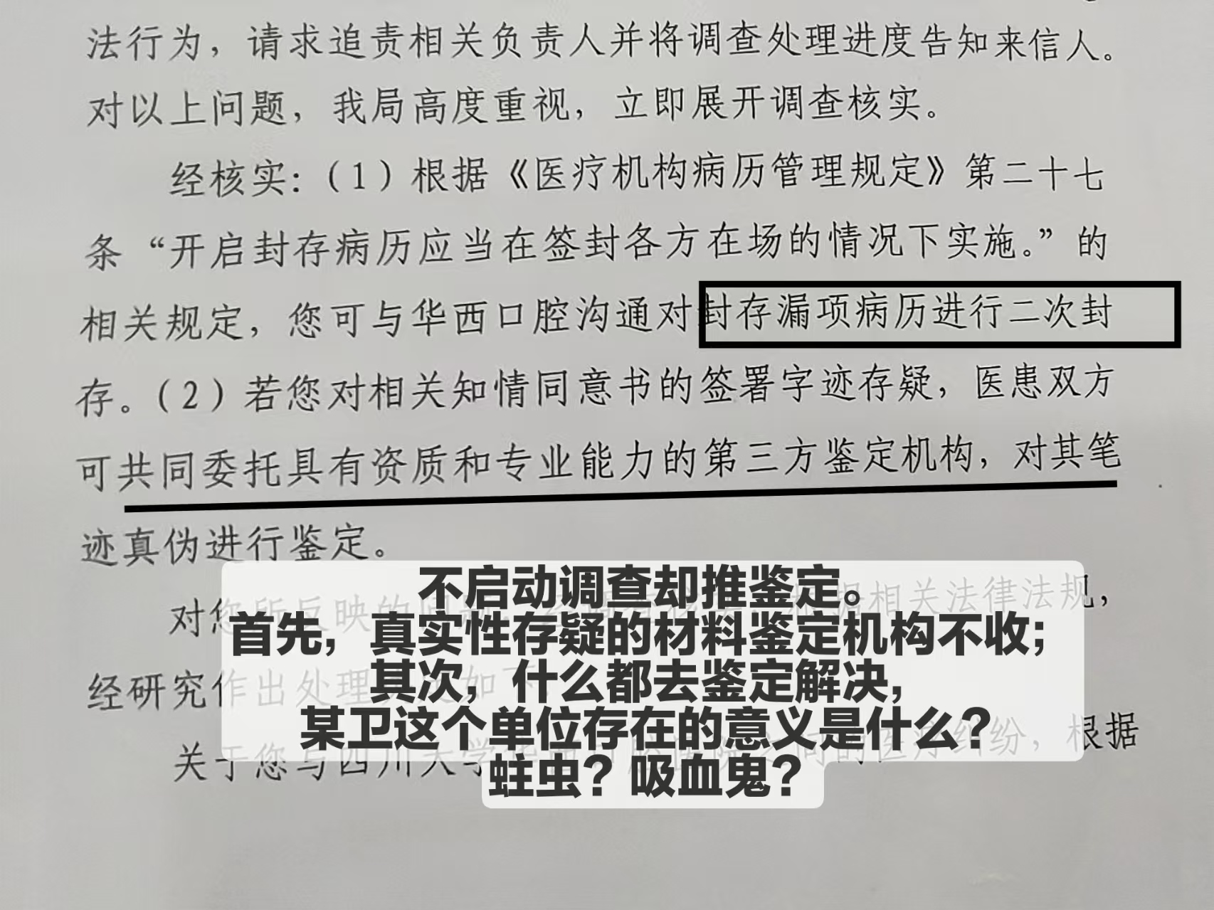 那么我在四川大学华西口腔医院封存病历后,向相关部门反映问题。医院却单方面反复新增许多病例,其中包括五份知情同意书。