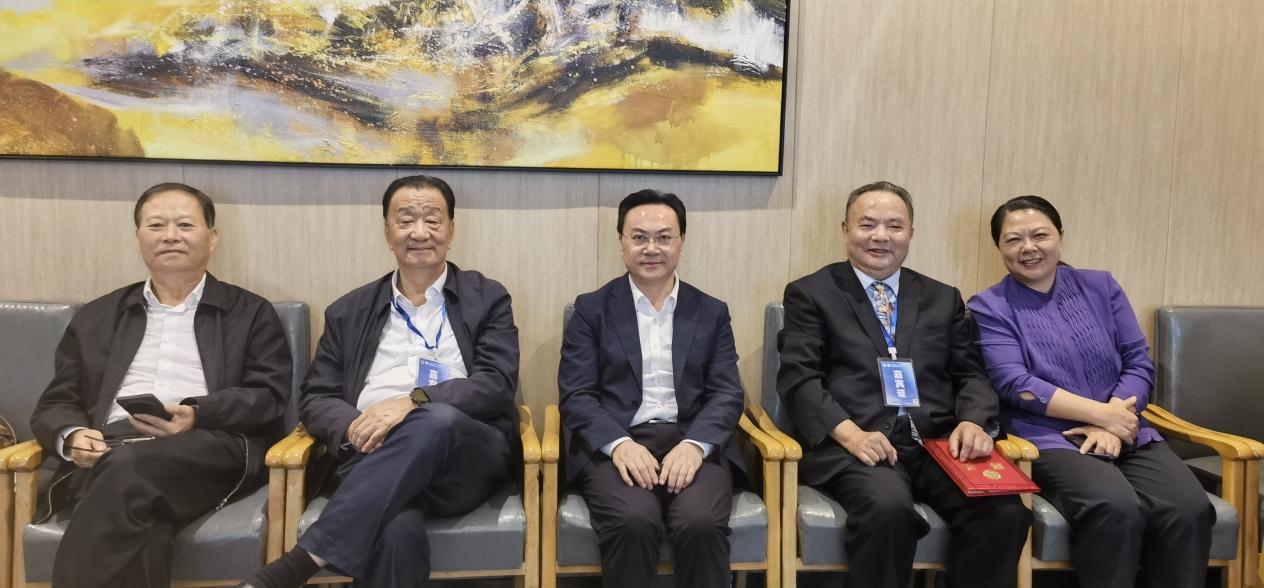 湖南省人大常委会原副主任叶红专(左一)、中国茶叶流通协会会长王庆(左二)、中共中央候补委员、中国工程院院士、湖南省师范大学校长刘仲华(左三)、世界文化中国代表人物、国家级中国茶文化首席非遗传承人·中国茶文化研究院院长罗大友(右二)、湘西州人大主任吴凌频(右一)在贵宾室交流
