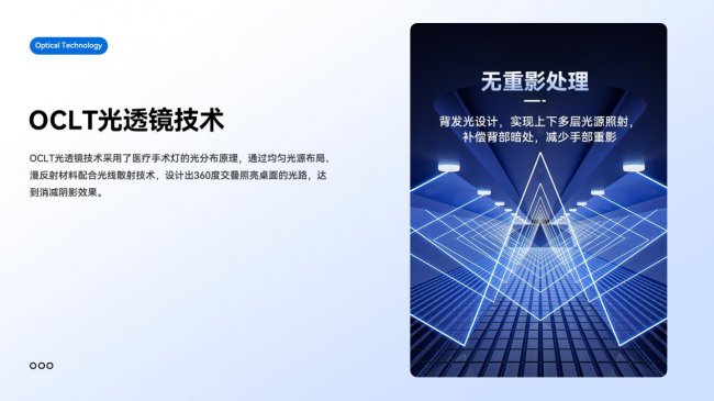 3、极致柔和减影:DT多维漫射+OCLT光透镜技术重影和刺眼,是传统台灯的两大顽疾。重影会迫使孩子在写字时不断调整头部角度,长期下来不仅影响坐姿,更会加剧视疲劳和颈椎负担;而光线刺眼则直接刺激角膜神经,引发不自觉的眯眼、揉眼行为,进一步加重屈光不正风险。