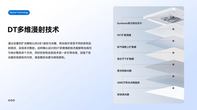 同时配合DT多维漫射技术,模拟太阳光经大气层的漫反射原理,让光线经过1800次折射散射,将光线柔和度提升89%,即使长时间在灯下读写,眼睛也不易产生酸涩感,做到直视光源也不觉刺眼,真正实现“对眼睛0伤害”。孩子在这样的光环境下学习,眼睛始终处于放松状态,不再因为光线刺激而频繁揉眼、眨眼,专注力也随之提升。