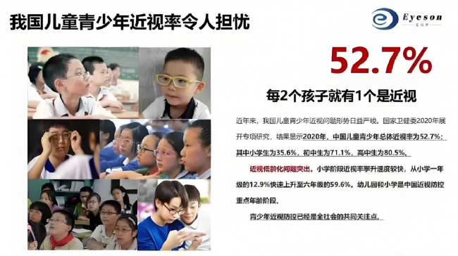 当下,青少年近视率居高不下,据国家卫健委相关调查,2020年我国儿童青少年总体近视率已高达52.7%,其中高中生近视率更是突破80%。