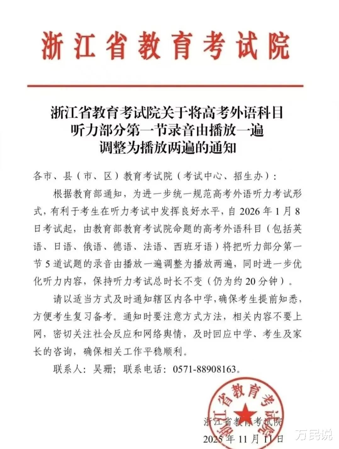 这一调整意味着,听力部分的题型结构、题目数量和分值权重均保持不变,但考生获得了更多一次捕捉关键信息的机会。对于高考听力考试而言,这无疑是一个值得关注的变化,它将直接影响考生的答题策略和考场心理状态。