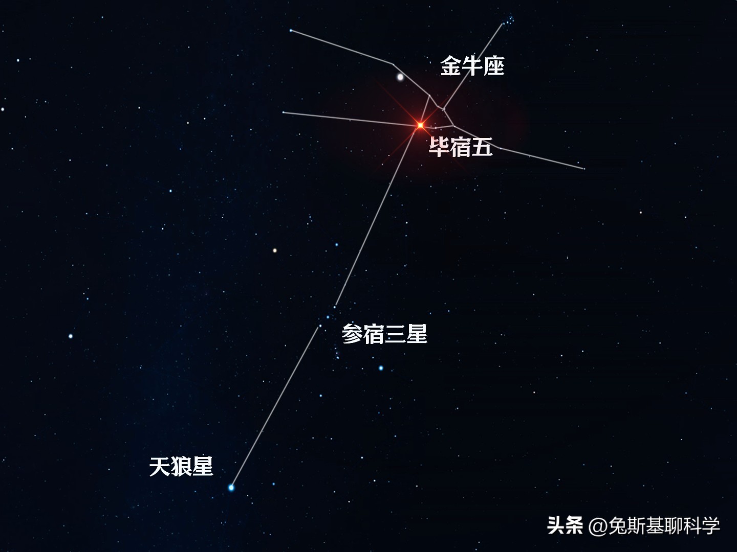 毕宿五是金牛座最亮的恒星,视星等为0.85,是全天第14亮的恒星。冬季是观测毕宿五的最佳季节。我们在天狼星和猎户座腰带的参宿三星(参宿一、参宿二、参宿三)的连线方向延长大约1倍距离的位置上会看到一颗明亮的橙色恒星。它和周围的一些恒星组成了一个V字形。这颗恒星就是毕宿五。
