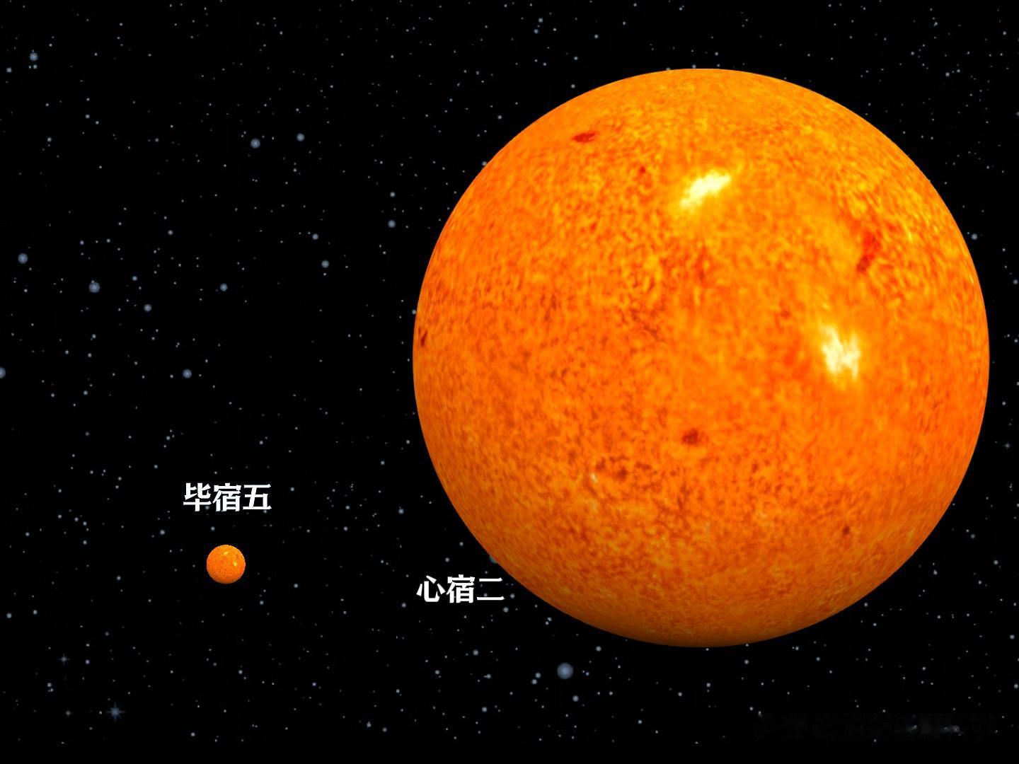 心宿二距离地球大约550光年,质量约为太阳的12倍,半径是太阳的883倍(约6.1亿公里),体积约为太阳的6.9亿倍,表面温度3750K(大约3500℃),光度是太阳的大约76000倍。科学家推测心宿二的年龄仅有800万年,但已经演化为一颗红超巨星了。