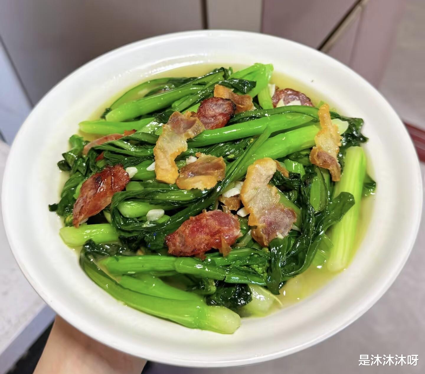 关火,装盘!看着琥珀色的腊肉躺在翠绿的菜心上,油亮亮的汤汁浸润着每一片菜叶,光是看着就让人食指大动。夹一筷子送进嘴里,腊肉的咸香和菜心的清甜在舌尖交织,菜茎脆嫩,菜叶软糯,吸饱了腊肉油脂的菜心,吃起来比肉还香!要是再配上一碗热乎乎的白米饭,那滋味,简直了——这就是家的味道啊,简单、温暖,却让人永远吃不腻。