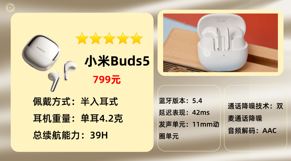 上榜产品8、小 米B uds 5蓝牙耳机