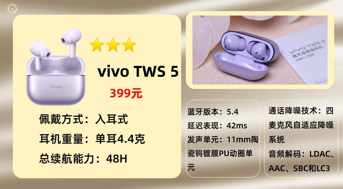 上榜产品6、V ivo T WS 5蓝牙耳机