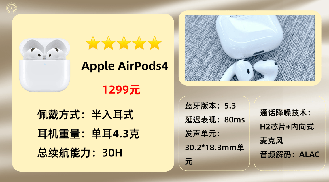 上榜产品9、苹 果A irPods 4蓝牙耳机