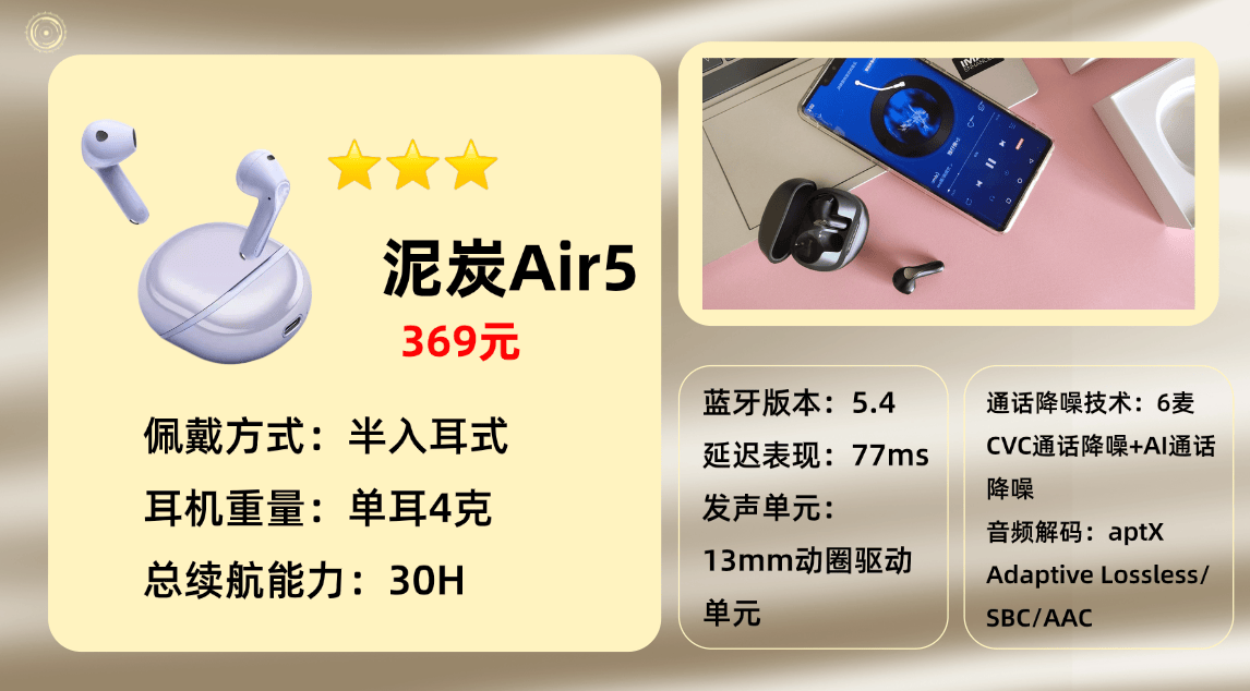 上榜产品5、泥 炭A ir5蓝牙耳机