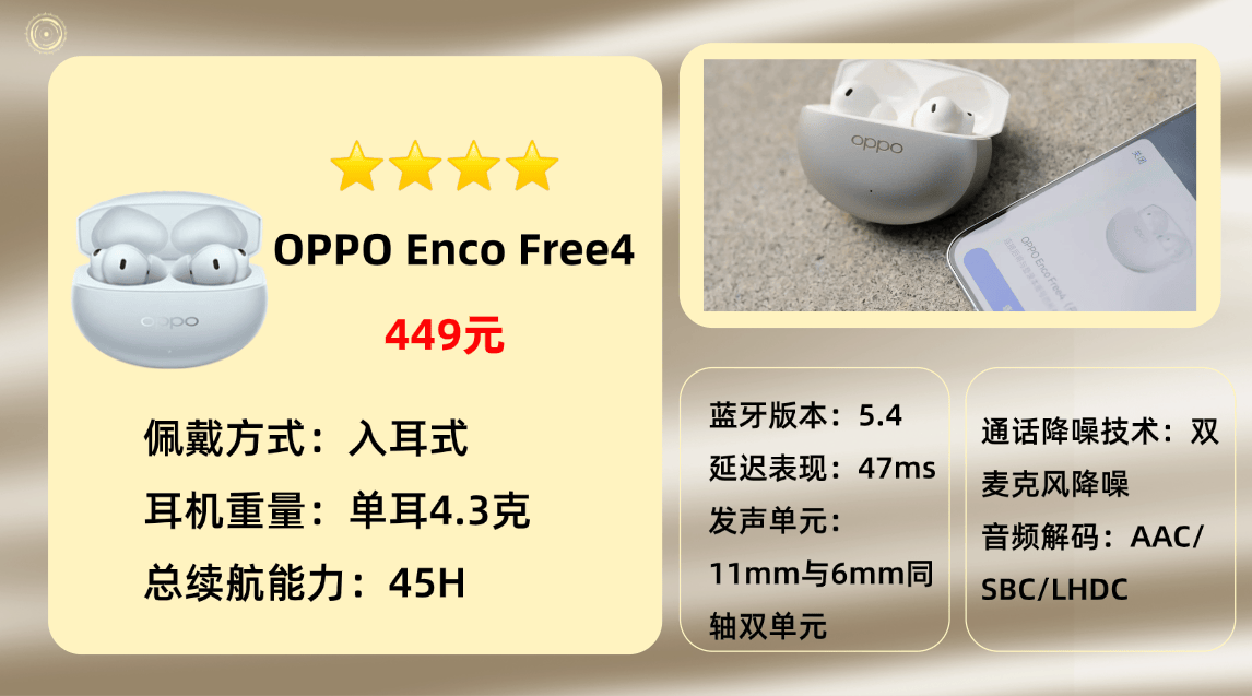 上榜产品7、O PPO E nco Free4蓝牙耳机