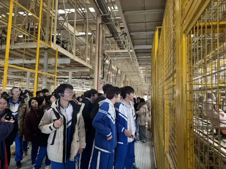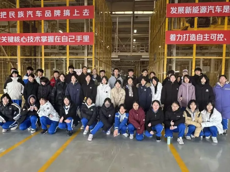 走进冲压、焊接、总装三大智能车间,科技的震撼扑面而来。AGV 小车灵活穿梭运送零部件,自动化机械臂精准完成焊接、装配等工序,3000 余种个性化配置在智能生产线上高效实现,让课本中 “工业 4.0”“智能制造” 的抽象概念变得可感可触。在红色课堂,纪录片的珍贵片段与亲历者的生动讲述,将 “人在机器要在” 的抗战精神与新时代的创新使命紧密相连,让同学们在感动中领悟民族工业的家国担当。
