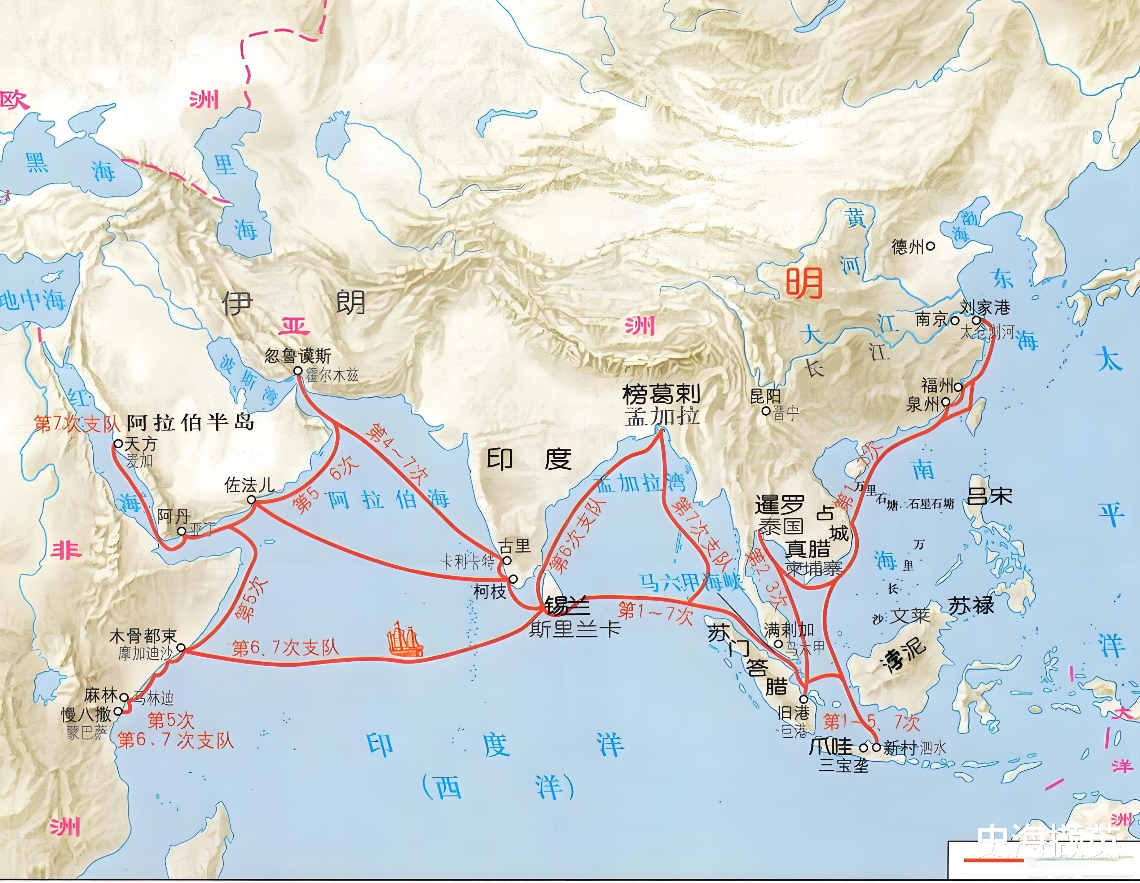 朱棣不可能不清楚,若要从战略上牵制或包抄蒙古,西域(今新疆和中亚)才是关键区域,完全无需舍近求远,绕印度洋前往西亚。