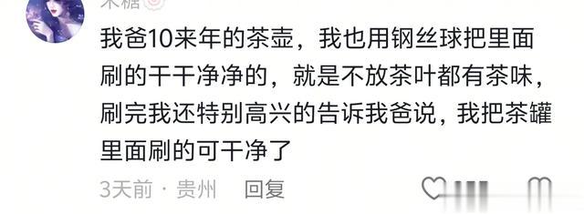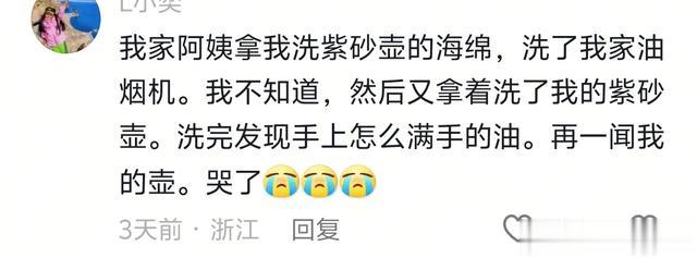 但阿姨并不知道这些,她只知道必须眼里有活,能刷干净一定要打理干净,不然对不起自己这份工资,阿姨甚至还会觉得老板表面衣冠楚楚实则埋汰的要死,壶都包浆了提在手里也不怕膈应 ,这一天天的 挣两个钱真闹心[看]