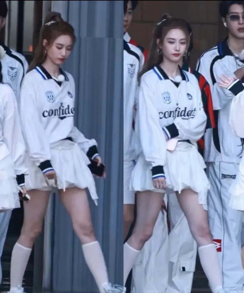 这事发生在《奔跑吧》最新一季的录制现场。 2026年3月底,节目在海口开录,常驻嘉宾还是白鹿、李晨、郑恺他们。飞行嘉宾里有魏大勋、周洁琼,还有徐艺洋。 徐艺洋是第一次上这个节目,黄子韬没跟着来。 路透视频里,白鹿穿着白色蓬蓬短裙配长靴,正在和别的嘉宾互动。 徐艺洋从她身后走过,穿着简单的休闲装,扎着高马尾。 就那一两秒的镜头,两个人的身高对比特别明显。 徐艺洋比白鹿高了差不多半个头,身材特别挺拔,腿又长又直。 网友都说,这身高和比例,简直是“女团门面”的现实版模板。