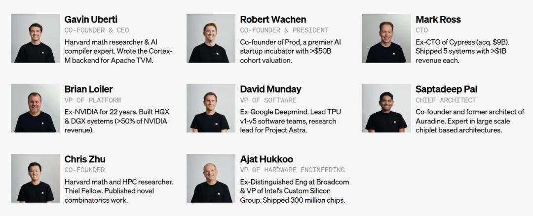 公司联合创始人兼 CEO 加文·乌贝蒂(Gavin Uberti)曾在哈佛大学担任数学研究员兼人工智能编译器专家,为 Apache TVM 编写了 Cortex-M 后端。联合创始人 Chris Zhu 曾担任哈佛数学与高性能计算研究员、蒂尔学者(Thiel Fellow),发表过组合数学领域的相关研究。