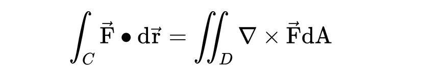 现在我们有了向量场上的线积分,可以描述为同一向量场的旋度的双重积分。双重积分与曲线所围成的内部区域有关,并且可以仅通过观察边缘来确定。这与单变量微积分中的基本定理相似,其中曲线下的面积可以通过观察端点来确定。