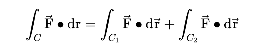 得到的积分是F在c1上的线积分加上F在c2上的线积分,