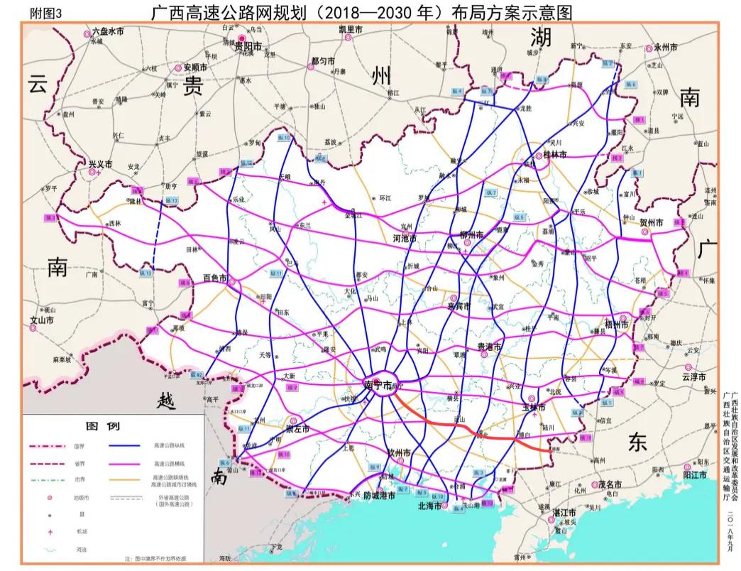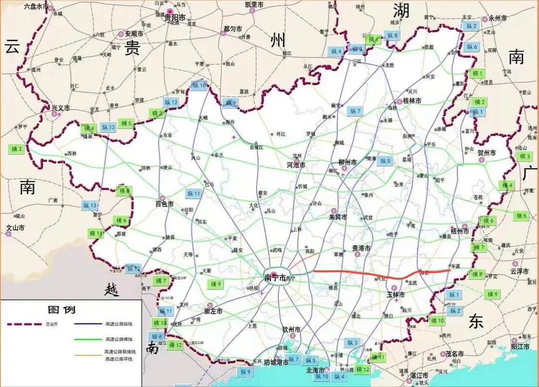 图中红色线路为深南高速广西段