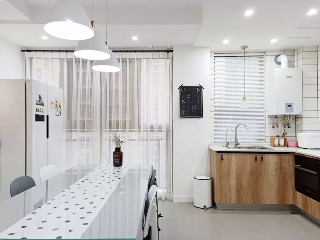 如今,忙碌的年轻人成为了购房装修的主流人群,他们当中多数都是为工作忙碌奔波的人,回到家也比较少自己做饭炒菜,厨房也只是偶尔闲事才会做上一顿饭,与其做个独立厨房放在角落里浪费,倒不如把餐厅与厨房设计成一体的设计,让小户型看起来更加宽敞,而且该有的功能也一应俱全。
