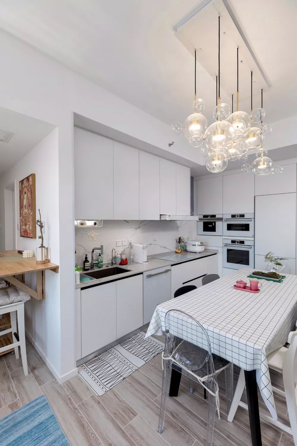 在小户型中,利用好每一个平方是保障空间利用与舒适设计的关键要素,但碍于面积较小,有时候就要面对顾此失彼的情况,比如说客餐厨的空间设计中,如何均衡好三者的空间分配,就是一项非常考验设计的事了。