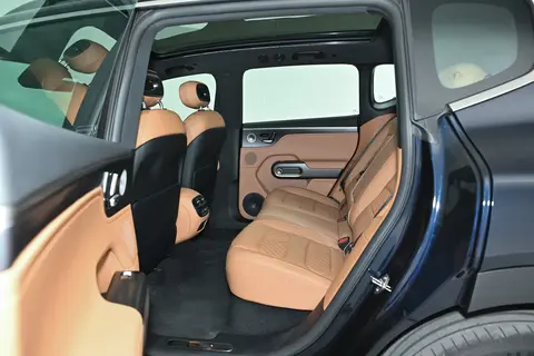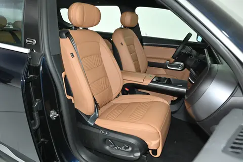 座椅材质分两种,120Pro 版本是普通仿皮,其他车型用的是 Nappa 小牛皮,我试驾的高配车型,座椅摸上去特别软,坐上去和家里的真皮沙发很像,没有廉价皮的塑料感。座椅表面做了多针复合打孔,透气性很好,夏天久坐也不会觉得闷。